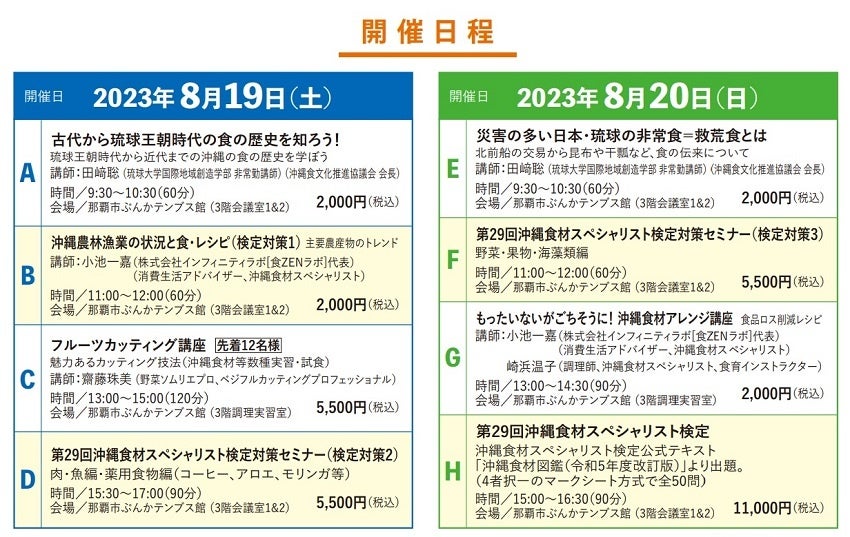 【沖縄食材スペシャリスト検定&食育セミナー開催日程】